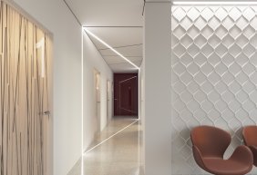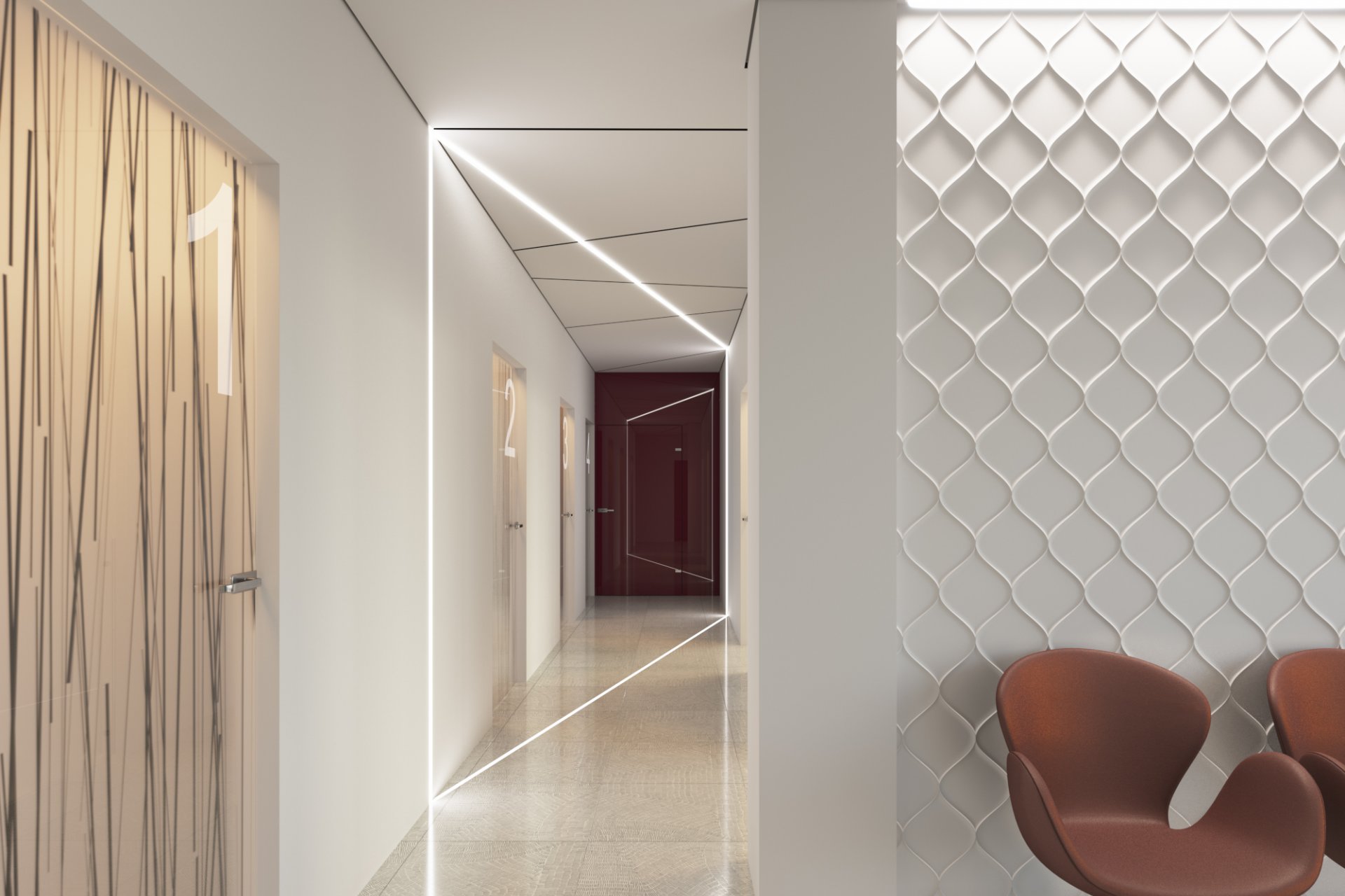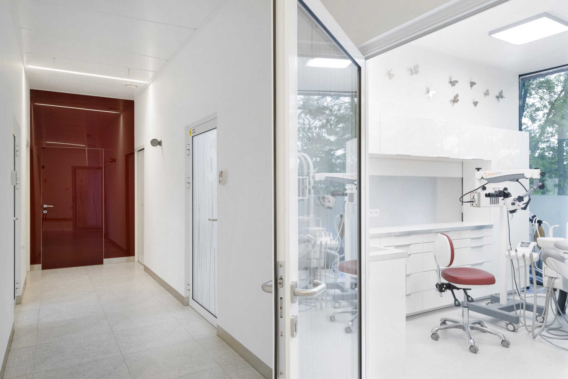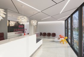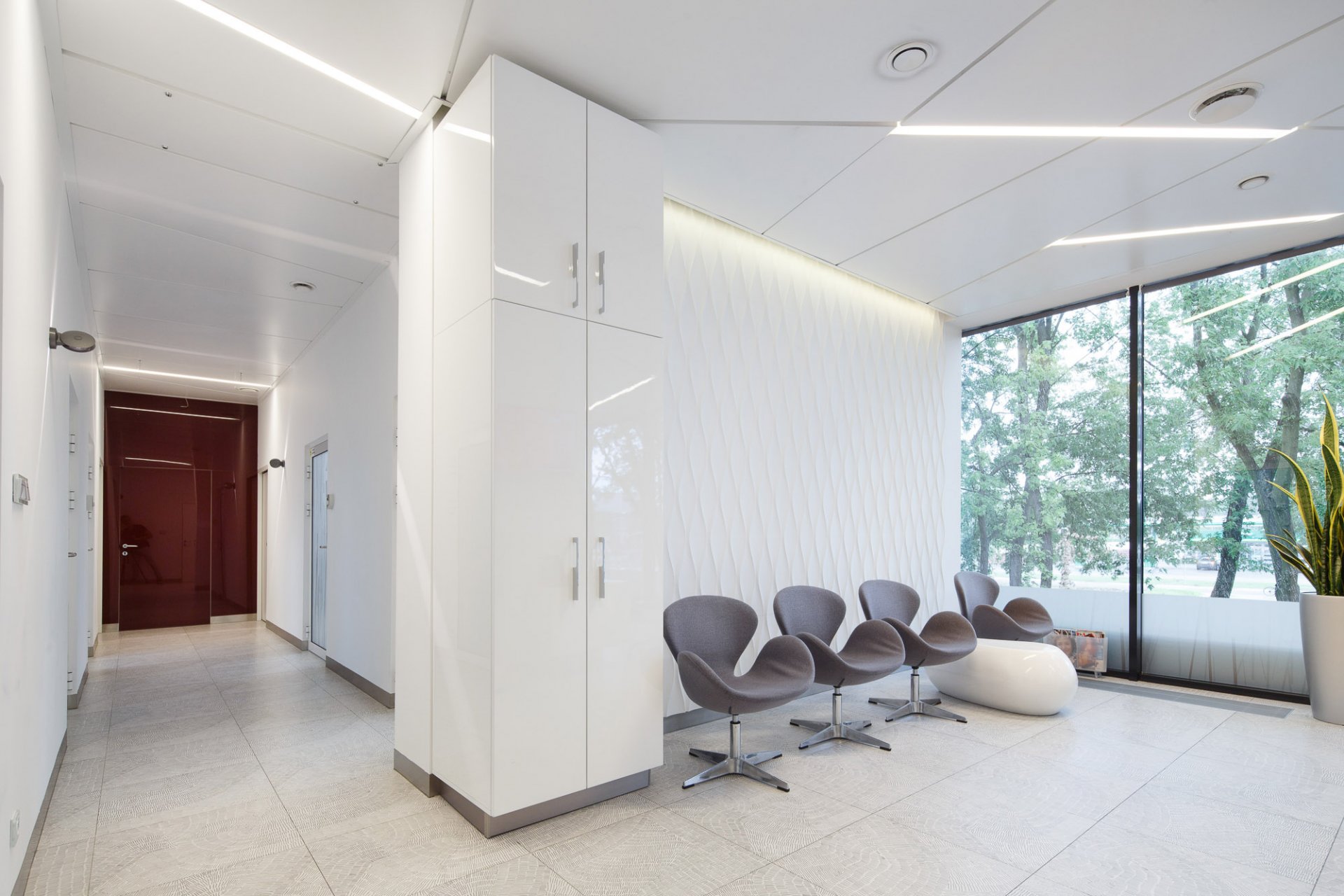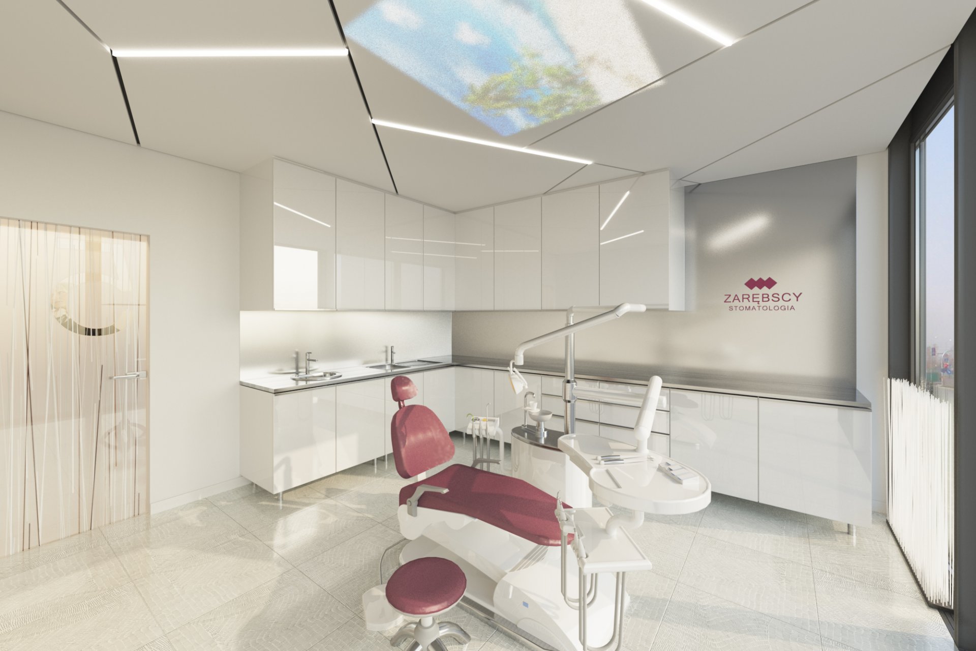 Warszawa Klinika stomatologiczna Zarębscy Stomatologia 160 m2, 4 gabinety projekt wnętrz