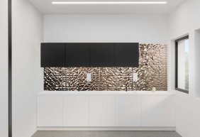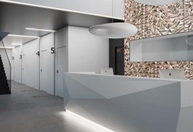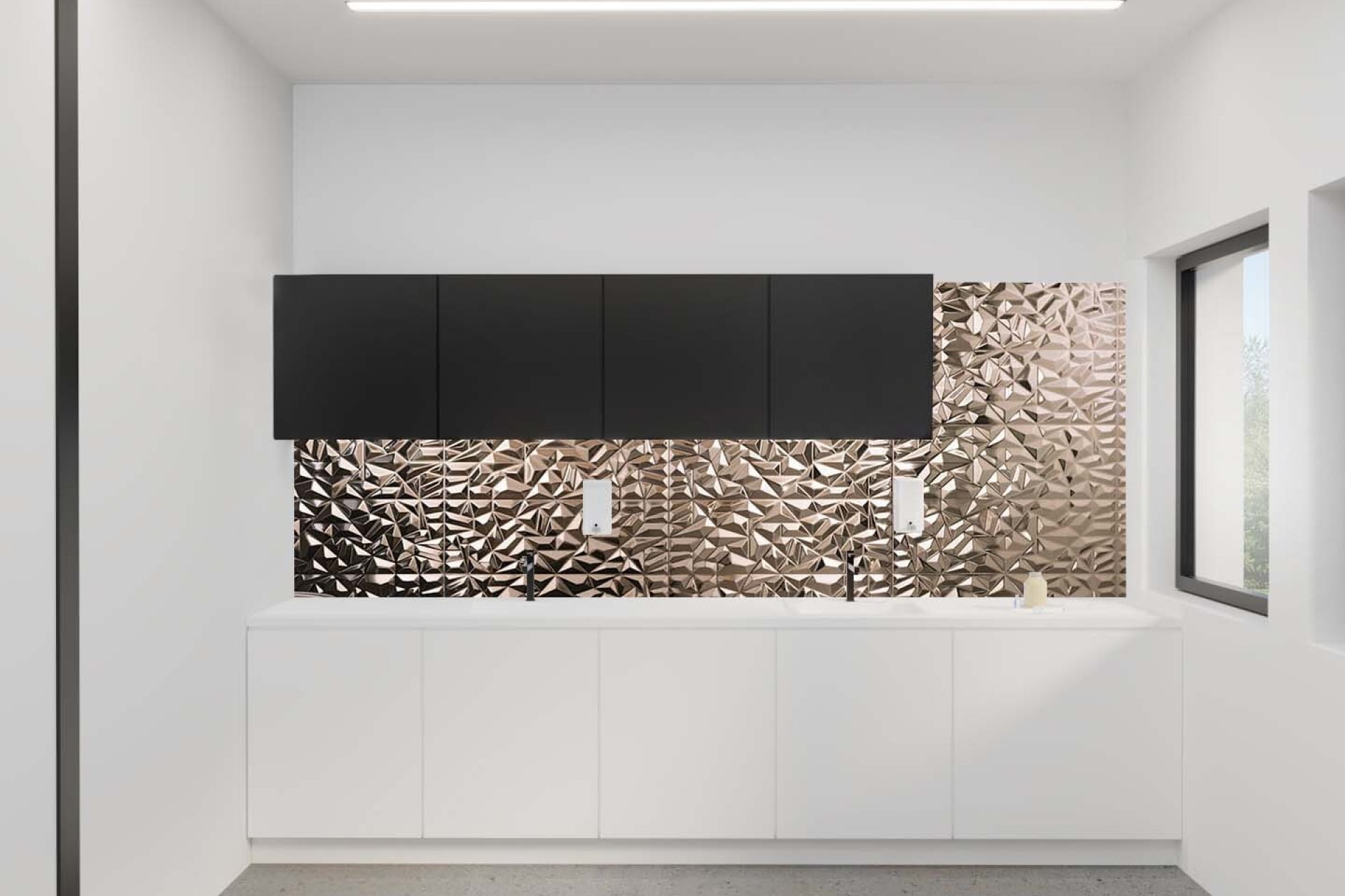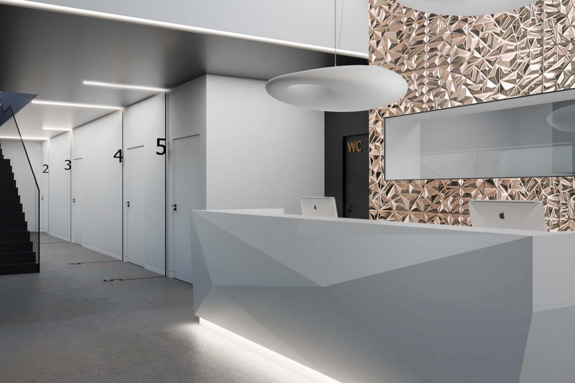 Wnętrze kliniki stomatologicznej z dominantą złota